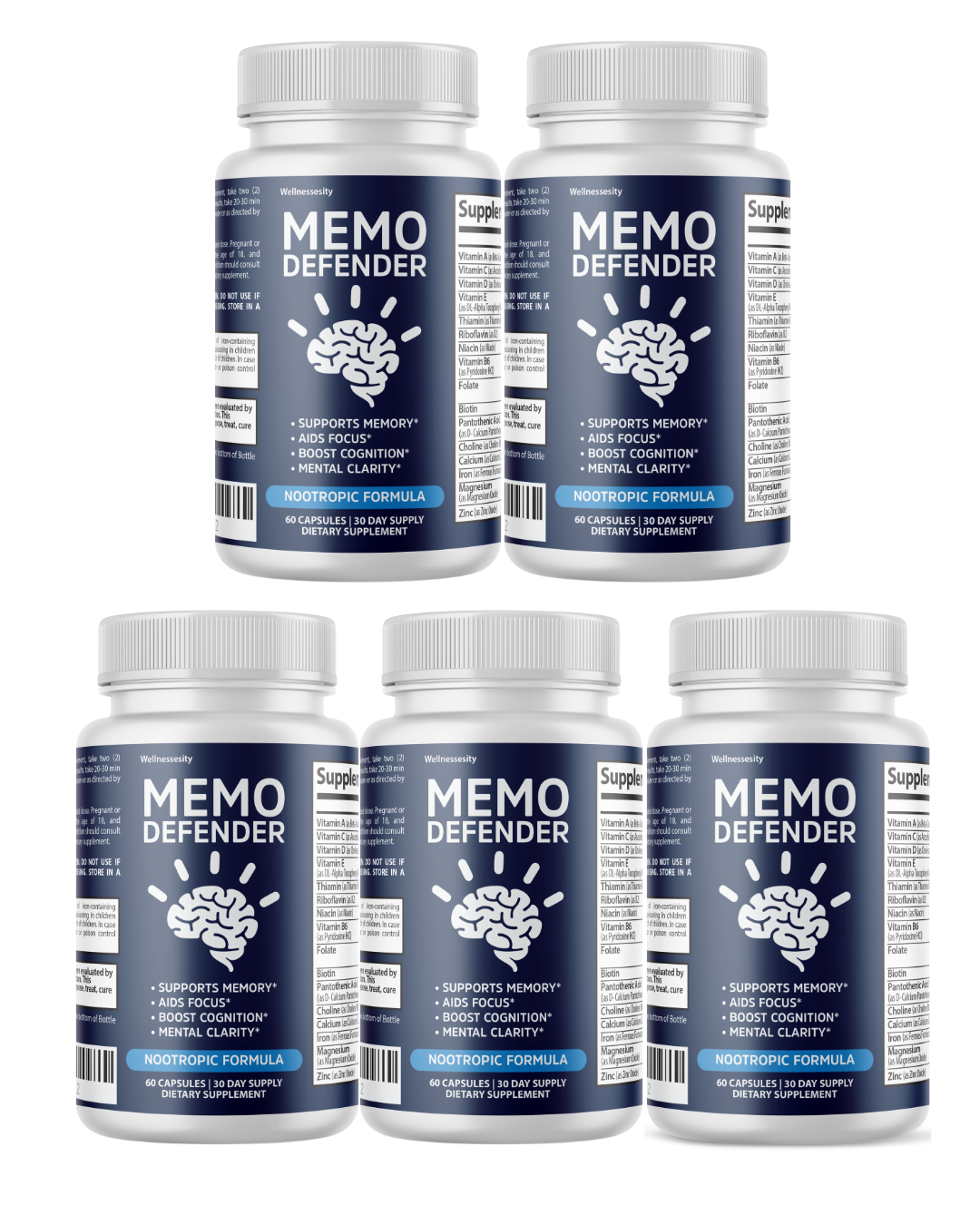 Memo Defender Boost Memory and Cognitive Function - 5 Bottles