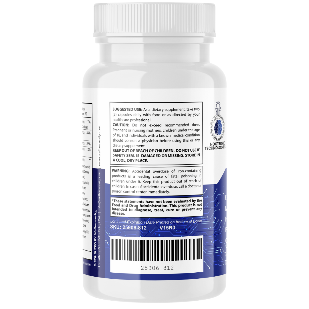 Boost your brainpower and performance with our Dietary Supplement. There are various factors that could cause our minds to be less clear and sharp. These cognitive enhancement capsules work in synergy to help improve your creativity, memory, attention, focus, concentration, and mood no matter your age. With a brain booster it will give your brain a jumpstart and improve memory and clarity. Feel the boost of concentration and focus that your brain needs. Our brain supplement may help enhance cognitive function through key nutrient supplementation. Each capsule contains highly effective ingredients that may help improve memory, focus, mental clarity and alertness. Take our brain booster supplement for focus, memory, clarity, and energy. Our product contains more nutrients than the average brain support supplement for mental acuity on the market.